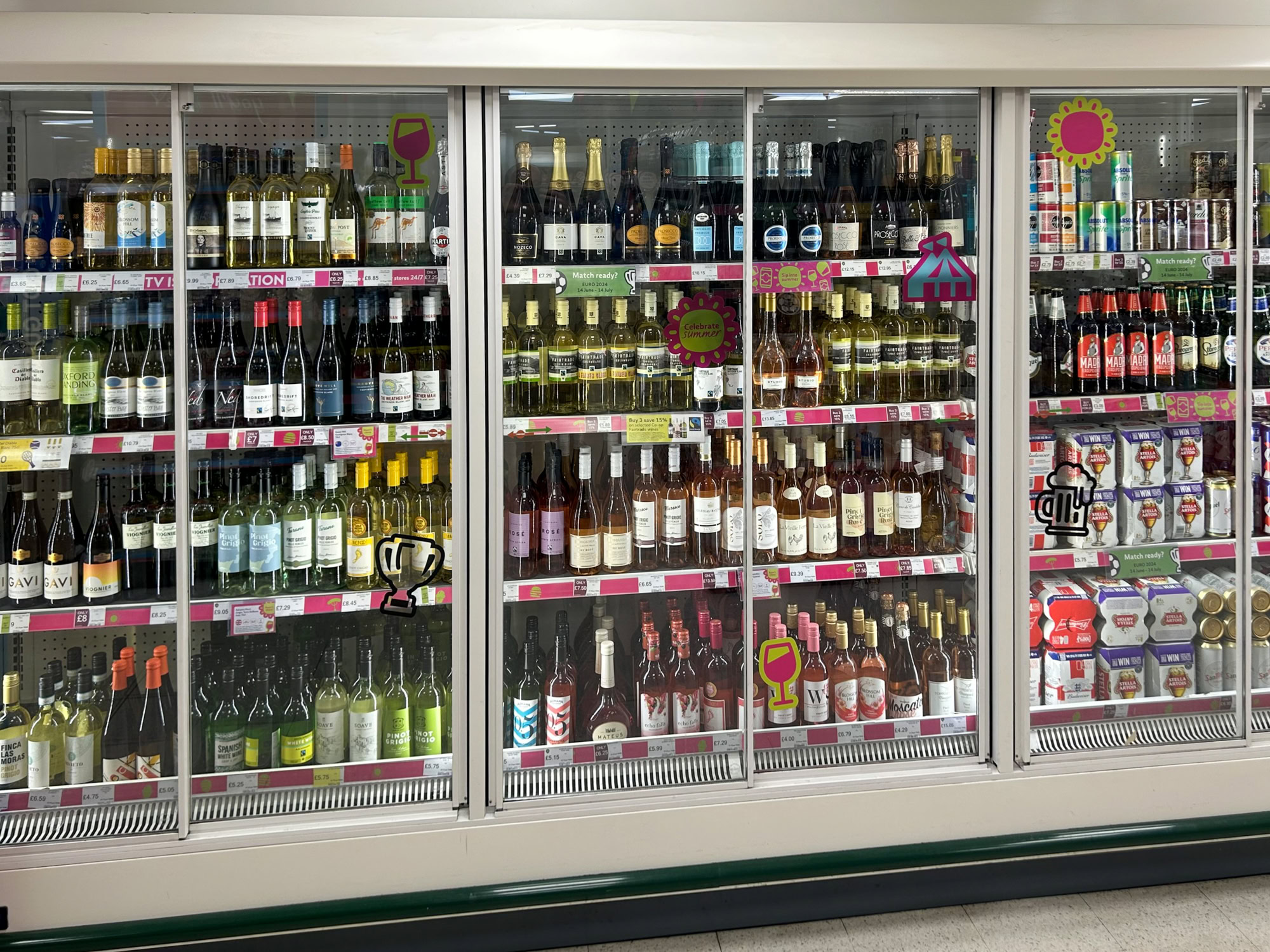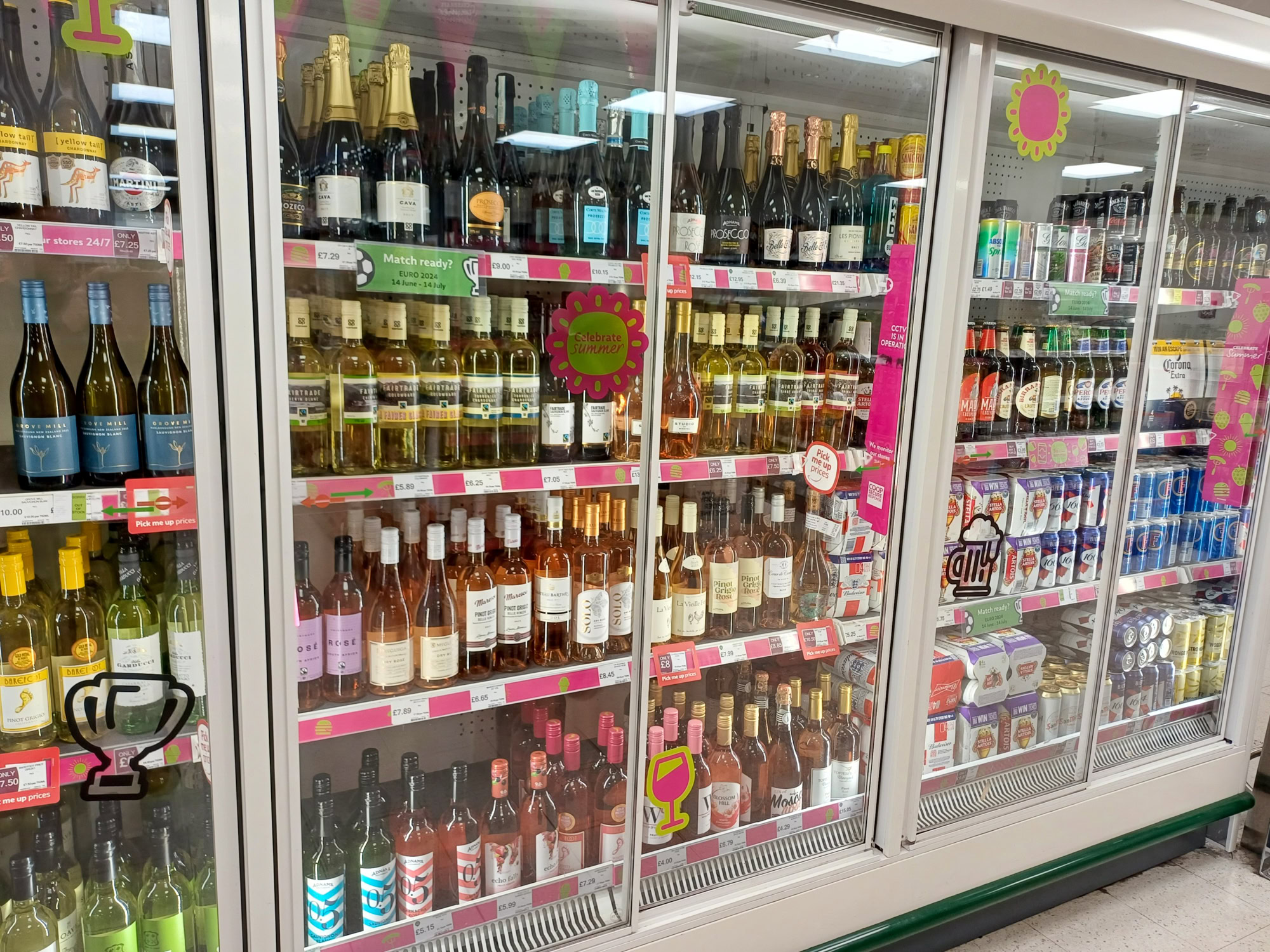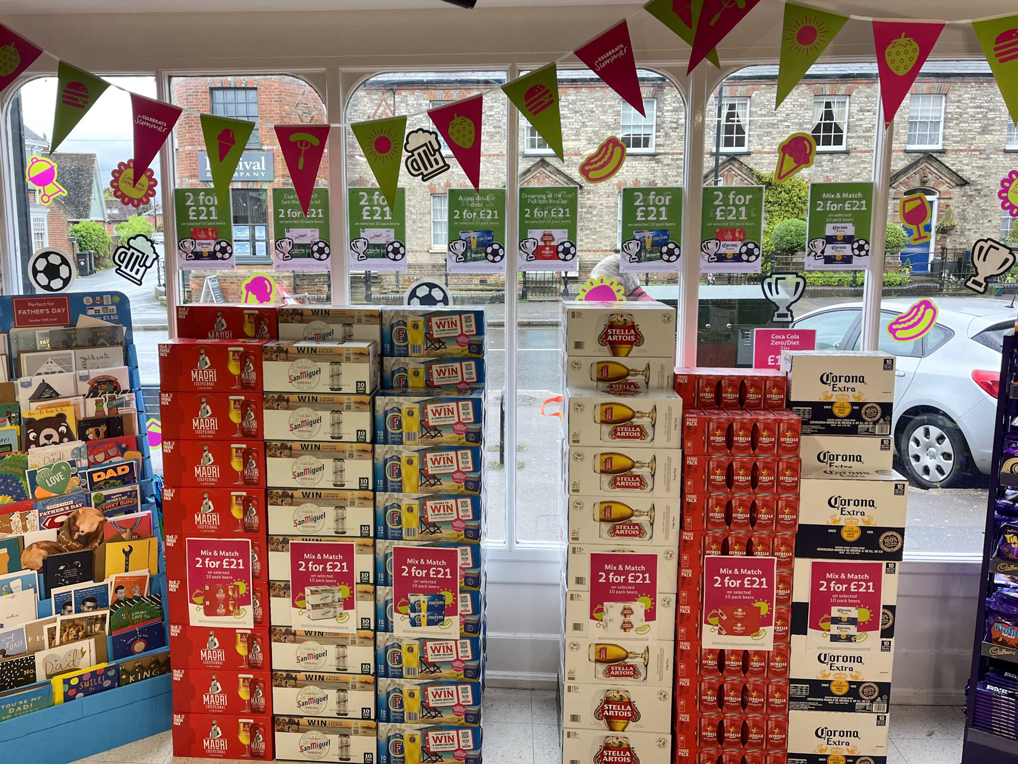 In diesem Sommer haben über 120 Co-op-Filialen in Ostengland Sommeraufkleber-Sets erhalten, einschließlich spezieller Veranstaltungsdesigns für die Euro und Wimbledon.
