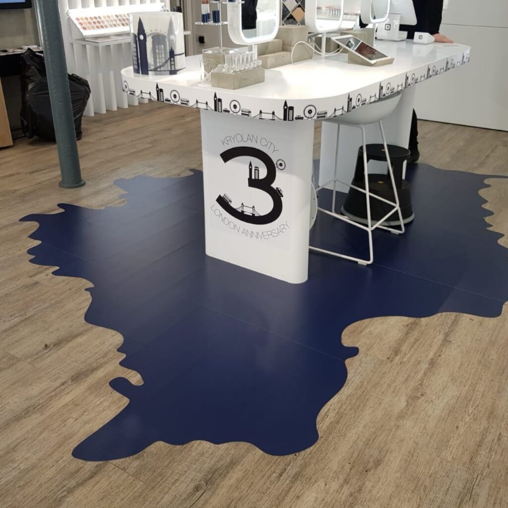 EASIFLOOR ist unsere einzigartige klebstoffbeschichtete Bodengrafik, die auf einer Vielzahl von Bodenoberflächen, sogar auf Teppichen, angebracht werden kann. Es lässt sich leicht und rückstandsfrei auftragen und entfernen und verfügt über ein rutschfestes Laminat für zusätzliche Sicherheit.